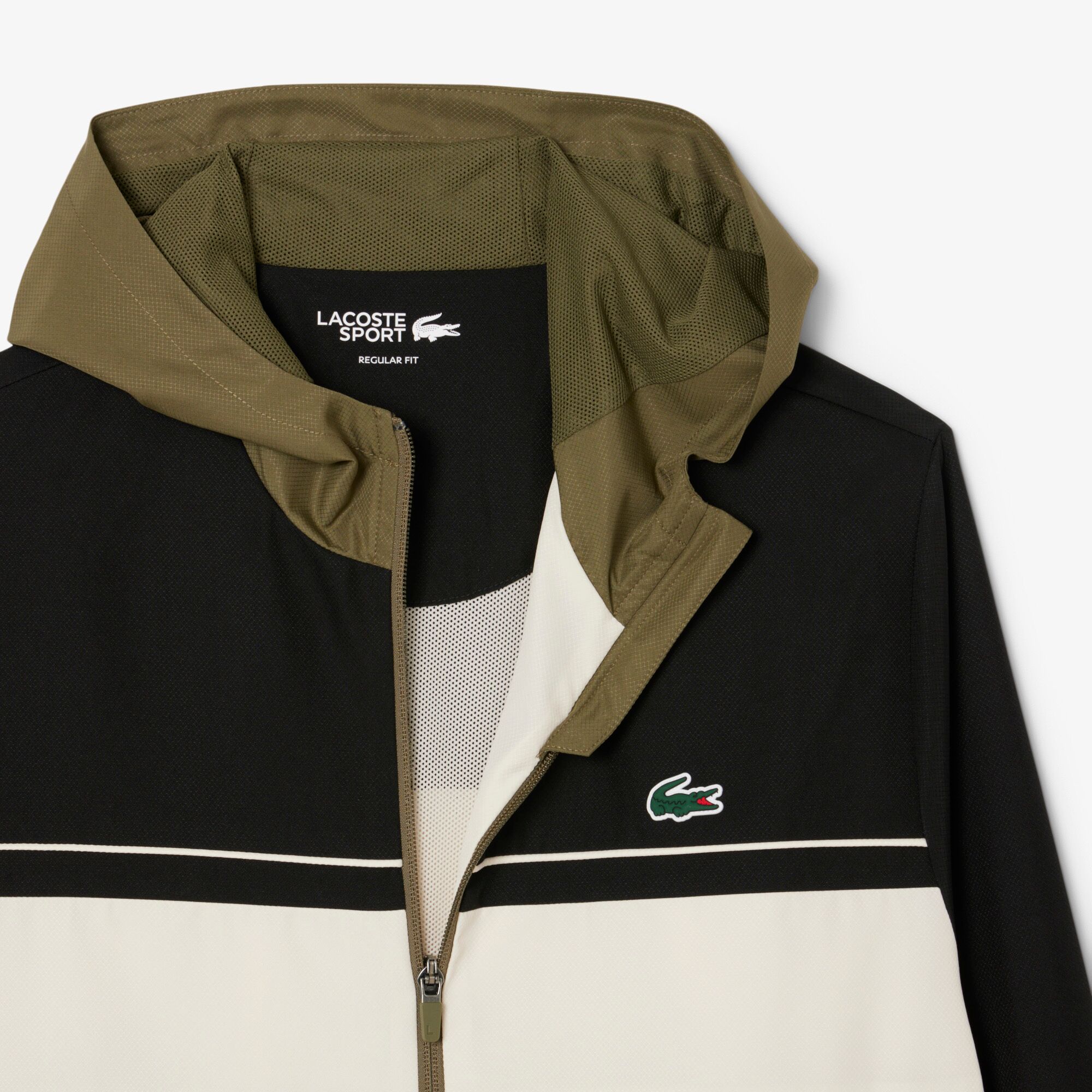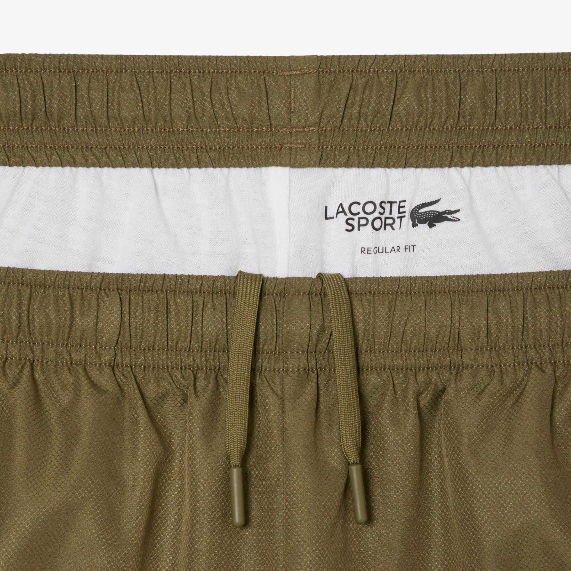 Lacoste tracksuit in lightweight recycled polyester diamond taffeta, built for easy movement and all-day comfort. The set includes a hooded jacket with breathable mesh lining in the hood and matching monochrome trousers lined in soft jersey for a smoother feel. Cut in a regular fit and finished with the green silicone crocodile for a clean Lacoste touch. This one comes up a bit small, so we’d recommend going one size up for the best fit.