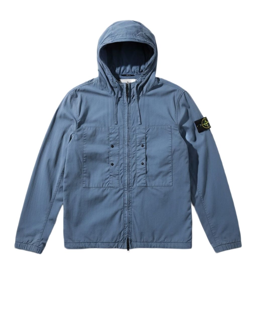 STONE ISLAND 4100091 Supima Twill Jacket is a sharp overshirt-style layer made in Italy from Supima cotton twill with added stretch for comfortable, easy wear. Designed with a funnel neck and contoured hood with drawstring, it offers adaptable coverage when the weather shifts. A four-pocket build keeps essentials close, with chest patch pockets adding utility, while a zip fastening and adjustable cuffs let you fine-tune the fit. Finished with the iconic Stone Island badge on the sleeve for unmistakable brand identity.